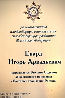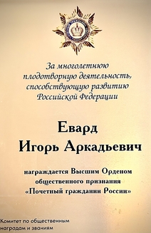 Igor Evard has been awarded the Order of Miliy Balakirev for his special contribution to the prosperity and promotion of Russian culture, for exceptional merits that contribute to the development of art, and for outstanding achievements in the field of creative education and spiritual and moral upbringing of children and youth.